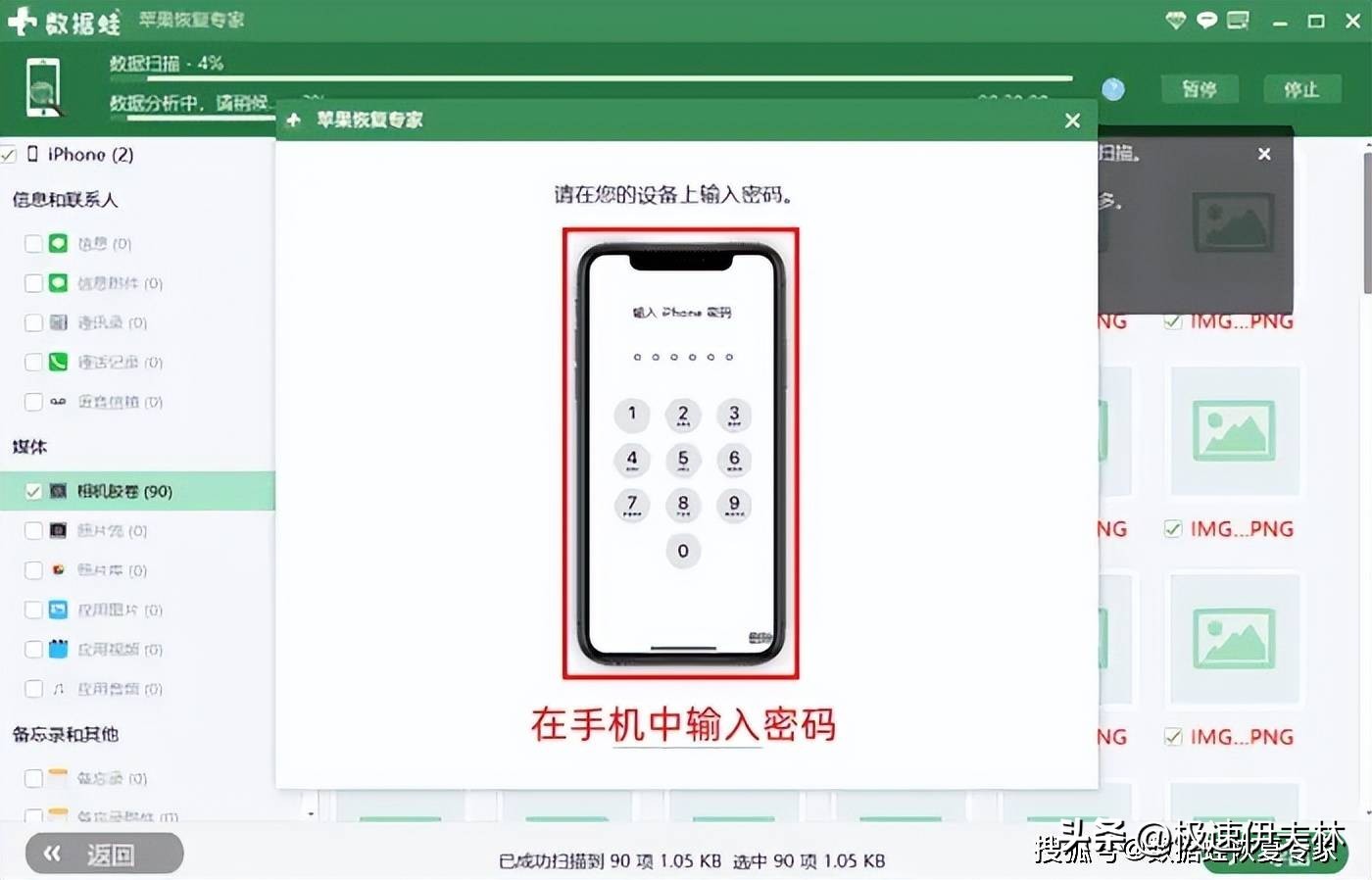 你需要将手机连接到电脑上,并打开数据恢复软件