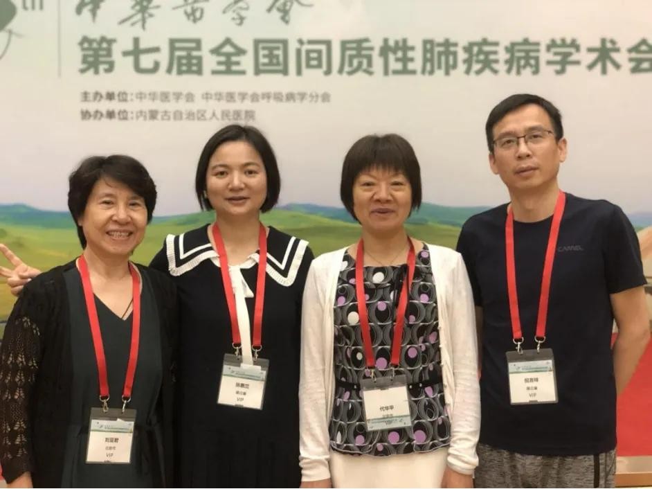张惠兰(左二)与代华平教授(左三)、刘亚君老师(左一)、倪吉祥教授(左四)于中华医学会第七届全国间质性肺疾病学术年会留影