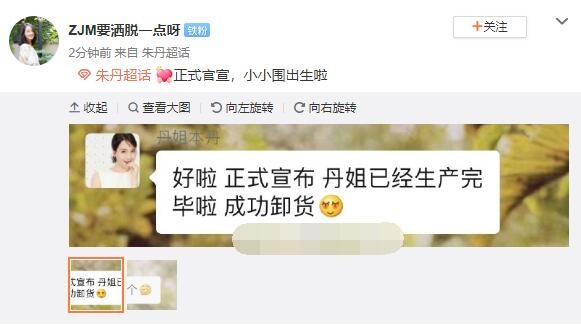 就在朱丹低调宣布生下二胎后不久,有粉丝晒出朱丹官宣生产的聊天记录截图,朱丹在文中透露,自己已经成功卸货,而且生下了一个臭小子。