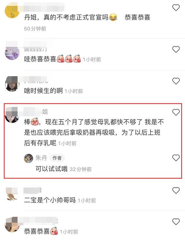但是在文中,朱丹并没有透露,自己所生的二胎宝宝性别。有网友询问她一些母乳喂养的相关问题,朱丹还有在评论区回复。