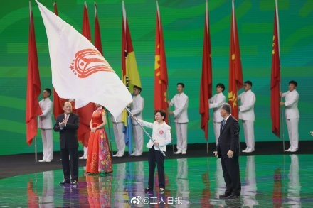 9月27日晚,第十四届全国运动会闭幕式在西安奥体中心举行。尽管场外下起了绵绵细雨,但场内的观众热情不减。在阵阵喝彩和祝福声中,第十四届全运会圣火慢慢熄灭,会旗转交到第十五届全运会主办地粤港澳大湾区手里。在精彩的文艺展演节目中,第十四届全运会胜利落下帷幕。(工人日报记者 吴凡)