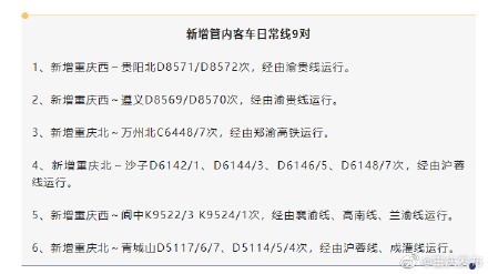 今天起!重庆新增9对日常线客运列车