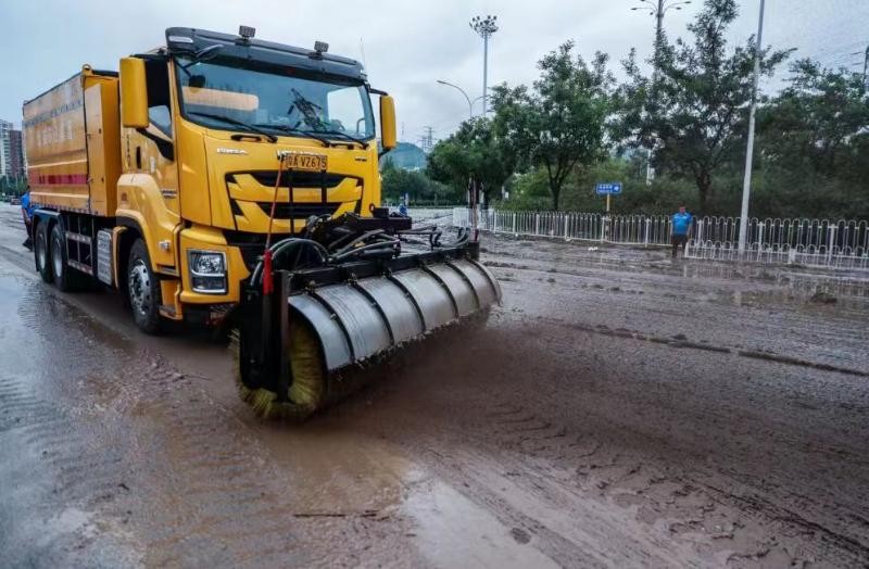 铲、推、冲、扫、洗,北京全市开展雨后道路清淤清扫