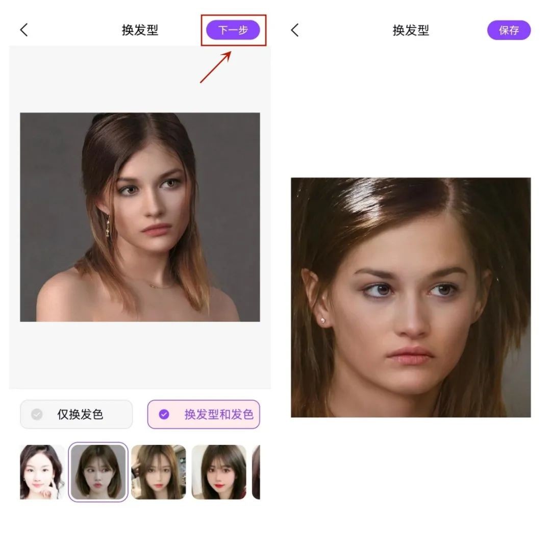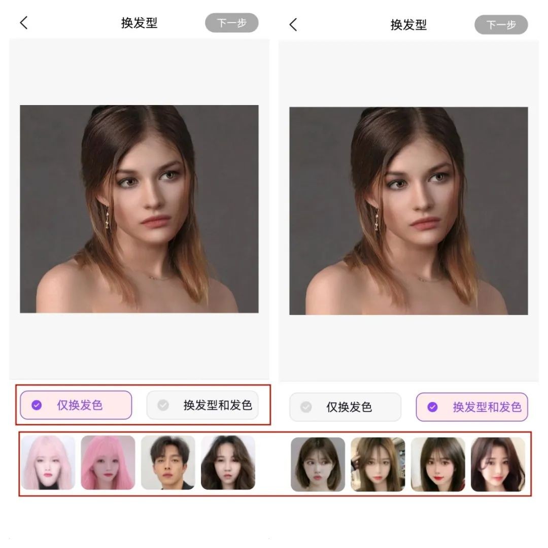 选择自己喜欢的发型,点击【下一步】,系统就会自动进行处理,稍等片刻就能获得换发型后的照片,不满意也可以重新选择发型生成。