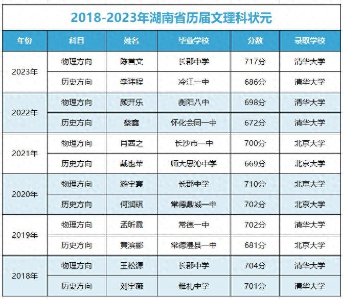 近六年湖南省历届文理科状元大盘点,看看他们都选择了哪个学校?