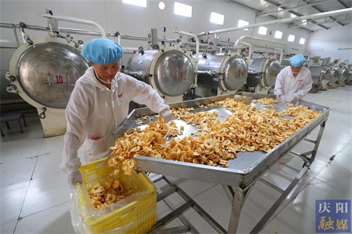 2023年7月1日,正宁县本土特色农产品苹果脆出炉。