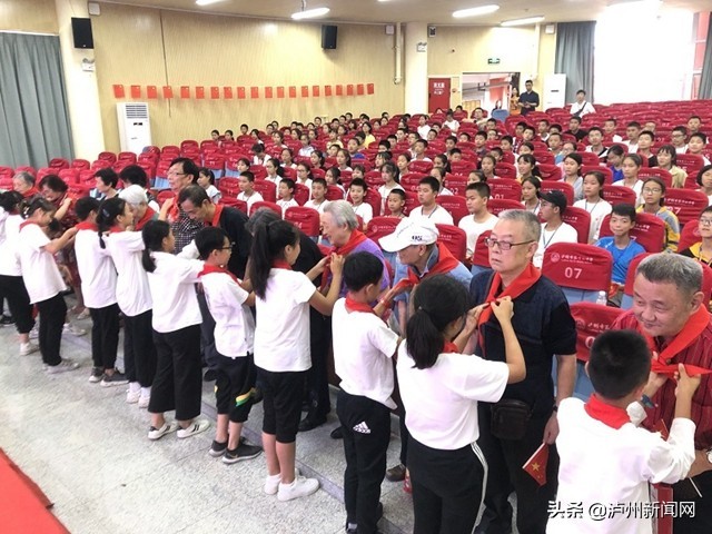 “爷爷奶奶,让我为您系上红领巾,我们一起为祖国庆祝生日。”