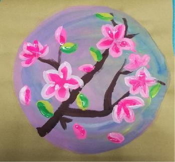 3.桃粉色结合白色渐变画出桃花,绿色画出树叶。