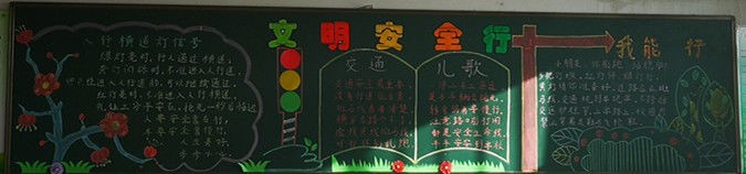 各班级黑板报主题鲜明,内容充实,图文并茂,趣味性强,全方位、全角度对消防安全、交通安全、食品安全、用电安全、法制等知识进行了宣传。