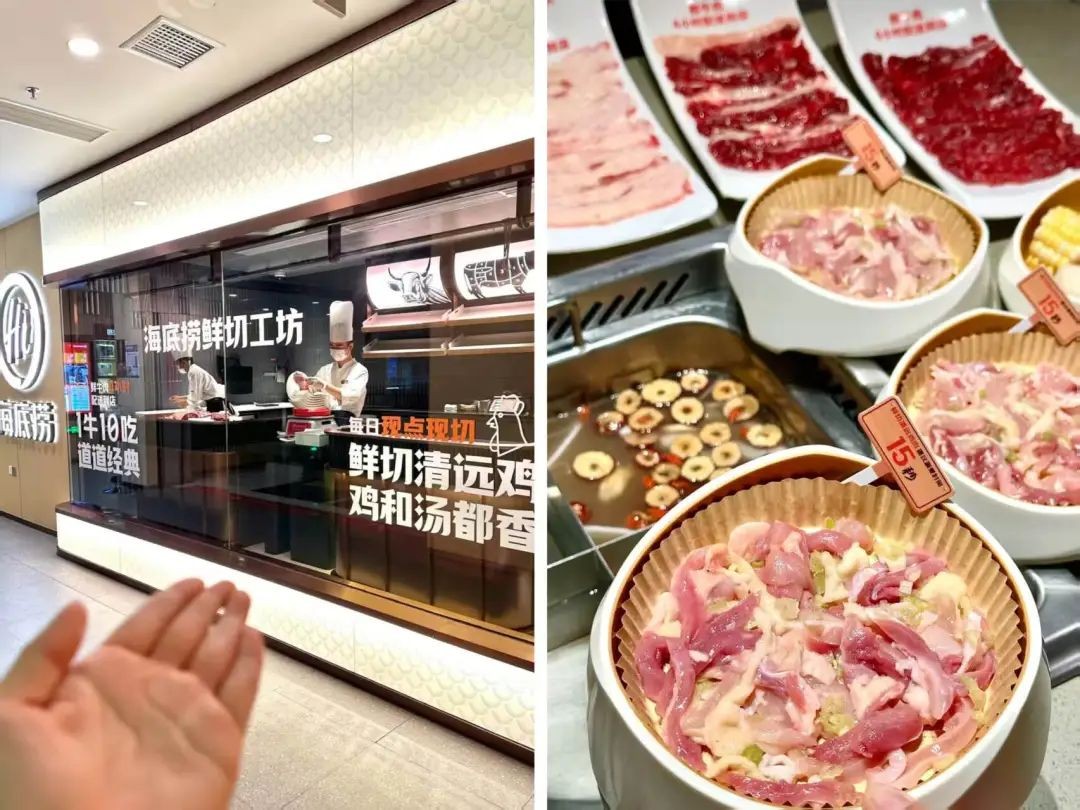 从快餐界的新鲜现炒,到火锅界的新鲜现切模式,在反预制菜和消费降级下,现炒、鲜切等形式精准踩中当下人们的消费情绪,并作为门店的特色卖点进而强化产品认知。就连海底捞,都将“鲜切”作为不同主题工坊的重要吸引点。