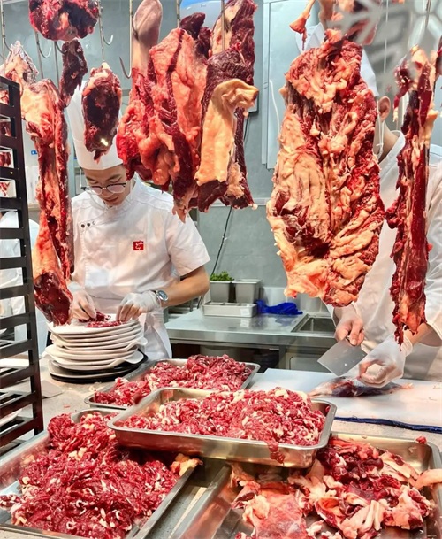 因为新鲜现切不仅能够保证食材的新鲜度,最大限度地保留肉质的鲜嫩和原汁原味,提升菜品的口感和品质,还能增加顾客的信任感。因为透过明档橱窗,人们直观看到食材的处理过程,欣赏后厨厨师在现场切割和烹饪的“精湛演艺”,增加食品的安全感和透明度。