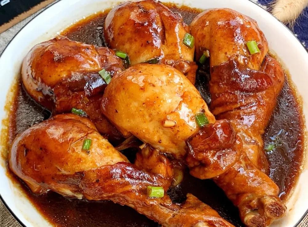 (5)转小火焖至鸡腿熟透入味,关火出锅撒上少许葱花点缀即可,好吃好做鲜嫩入味营养美味,老人小孩都爱吃!
