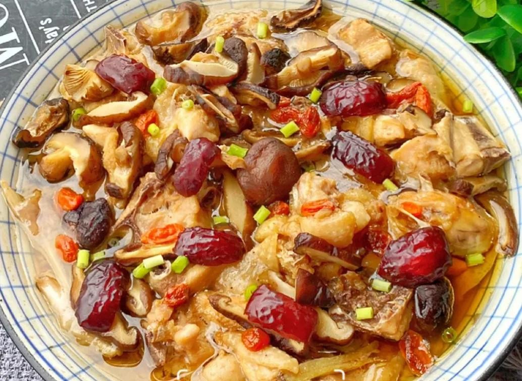 (1)老母鸡洗净剁块浸泡片刻,香菇泡发切片,红枣洗净去核对半切开,生姜切片。