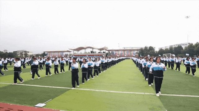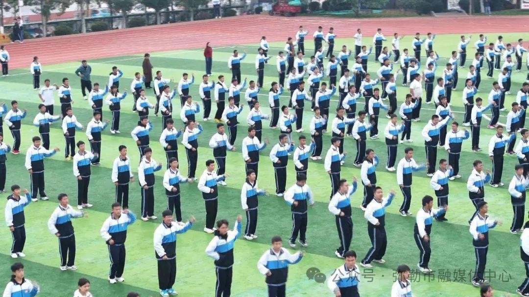 大课间,高一学生身着统一的校服,整齐划一的跳起校园操,展现出青春独有的活力与风采。