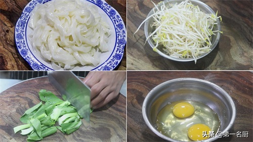 食材:河粉,鸡蛋,小豆芽,大青菜