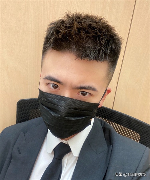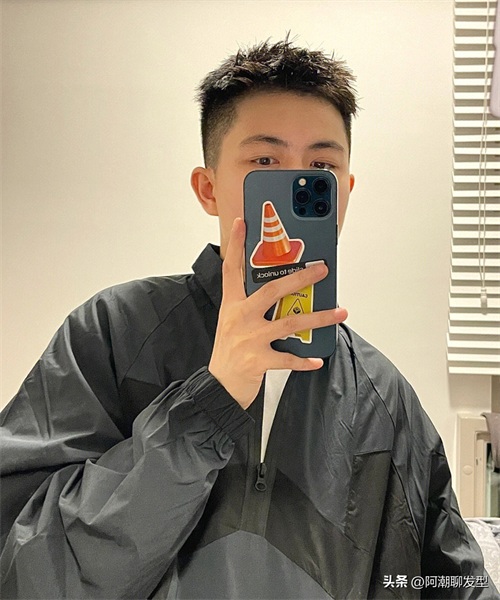 或者也可以像这位小哥哥一样,把上面的头发及刘海简单烫出些纹理感,这样的造型看起来不仅帅气有型,而且打理起来也特别简单,今年秋季还没想好剪什么刘海发型的男生不妨试试同款哦!