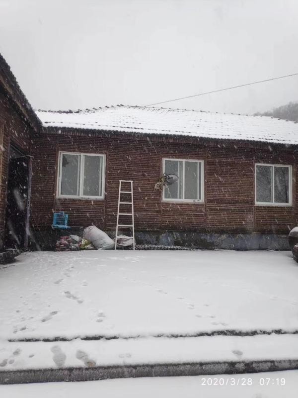 3月27日夜间,余杭鸬鸟镇开始飘雪,民宿老板王九龄拍摄了今晨的雪景。