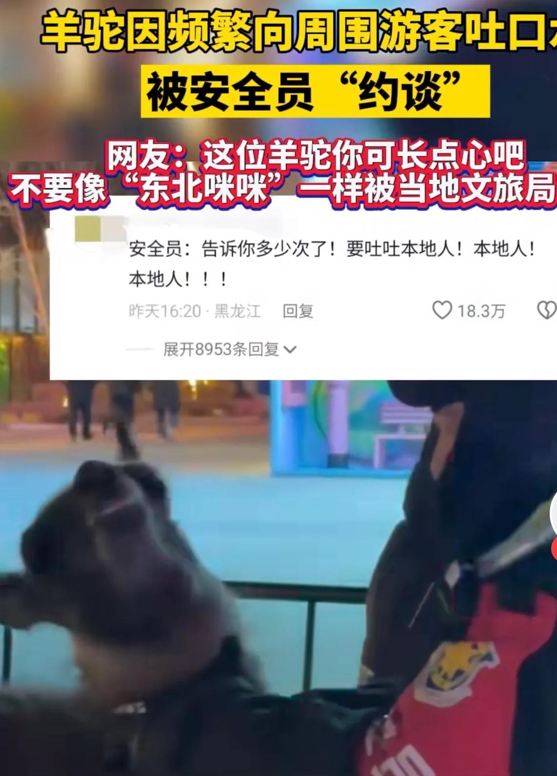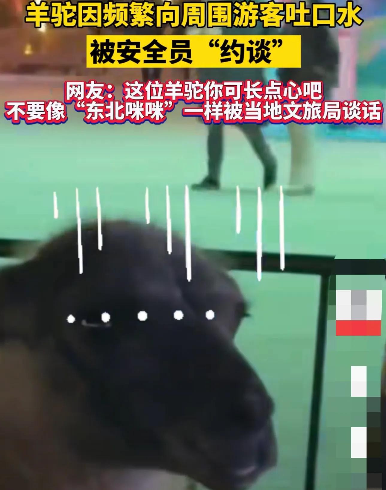 近日,在北京某游览场所发生了一件引人注目的事件。一只羊驼因频繁向游客吐口水,引发了游客和网友的热议。为了解决这一问题,该场所的安全员决定与羊驼进行“约谈”。