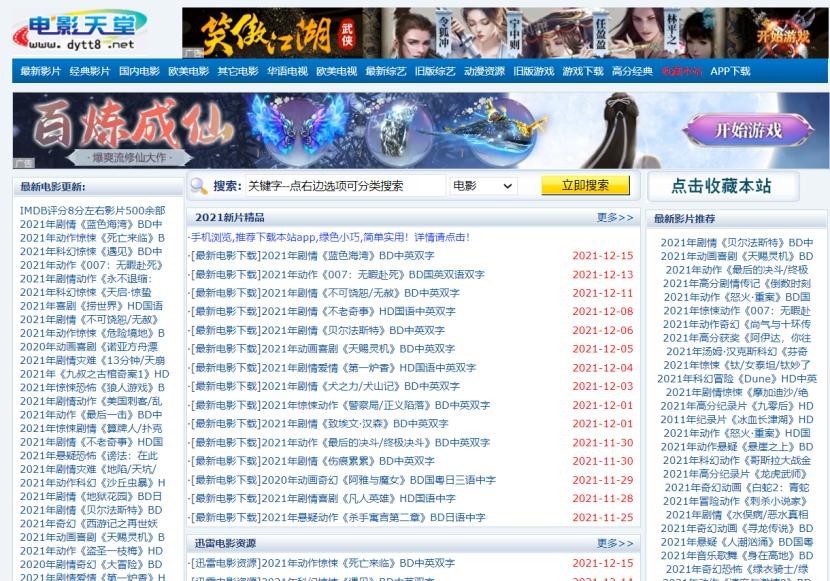 特点:比较有资历的电影资源网站,很火小伙伴应该都在里面找过资源。里面的经典老电影比较多,可以搜索。