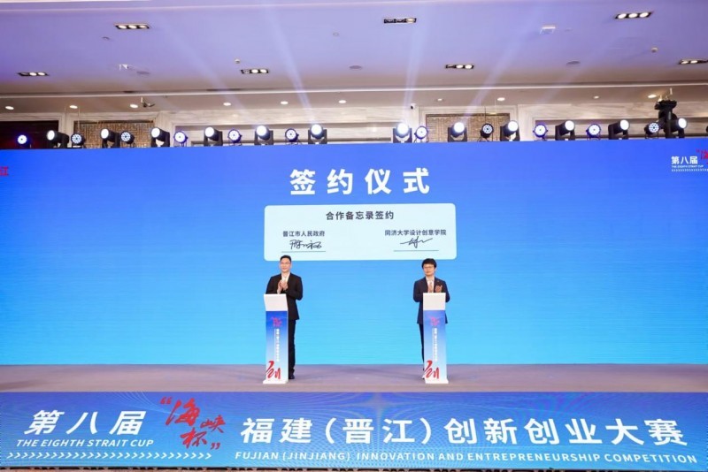 总决赛现场,入围的12个项目同台角逐,重量级评委嘉宾现场评析;现场邀请行业专家以“核技术应用产业化发展情况”为主题,分享前沿创新技术。颁奖仪式上,晋江市人民政府与同济大学设计创意学院签订合作备忘录签约。