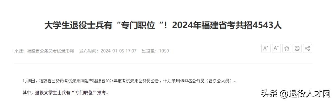内蒙古为促进退役军人就业,每年面向社会公开招考文职人员时,除了定向招考退役士兵的岗位外,拿出一定数量的岗位专项招考退役大学生士兵。