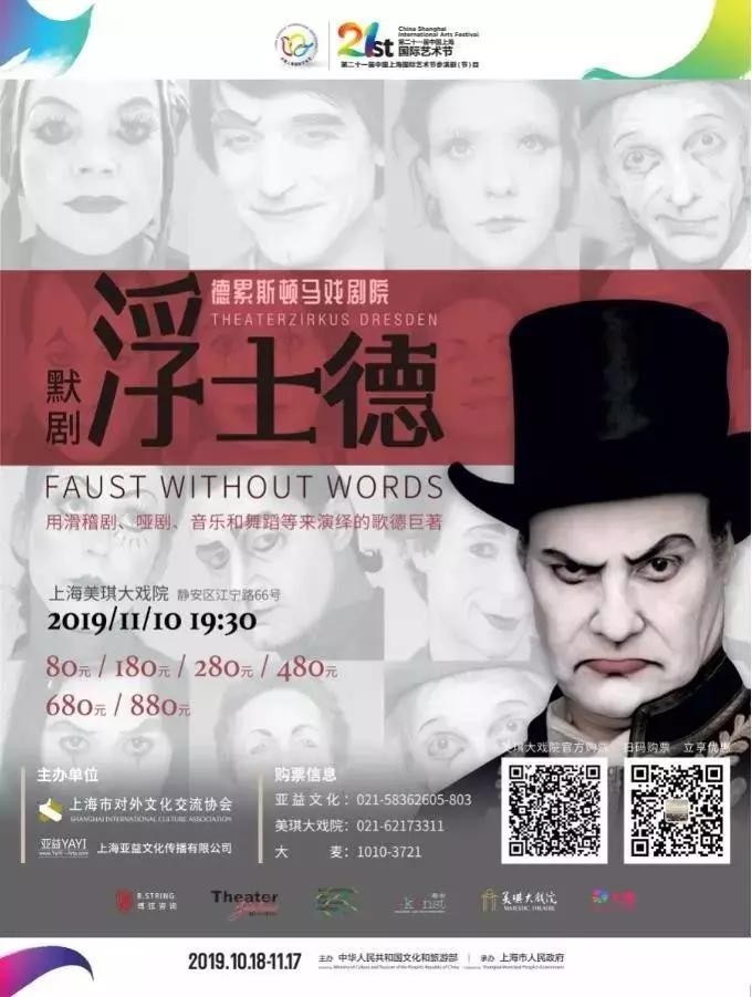 由德国德累斯顿马戏剧院带来的默剧《浮士德》加入了喜剧、音乐、诗意、舞蹈和马戏等戏剧元素,同时展现了黑光剧的老艺术形式,使得剧中人物通过脆弱而深刻的表达,做到不需要一句台词便能极致表现各种戏剧冲突。