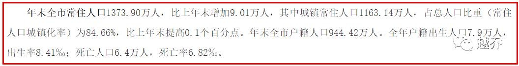 全年户籍出生人口7.9万人,出生率8.41‰;死亡人口6.4万人,死亡率6.82‰。