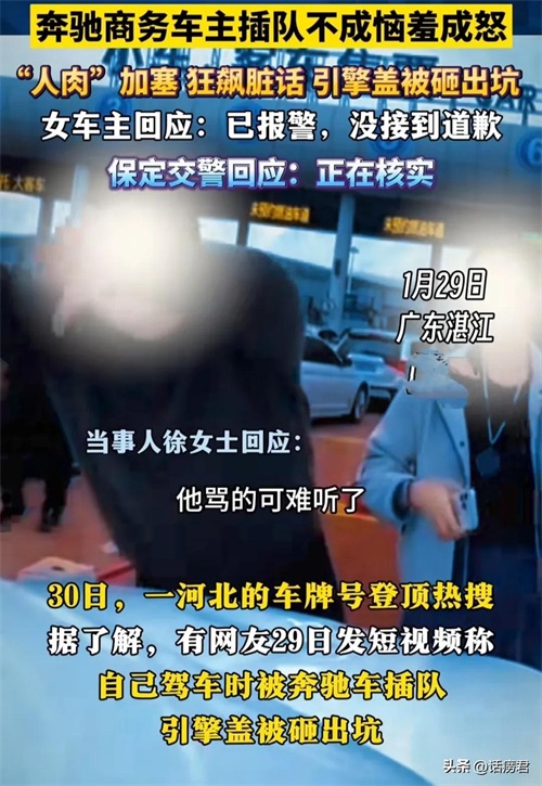 女车主回应被奔驰男加塞辱骂:没道歉,已与派出所联系,车定了损