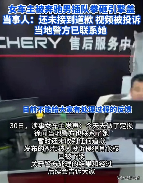 她目前还没有接到任何道歉,但她已经与派出所取得了联系,并为自己的车做了定损。
