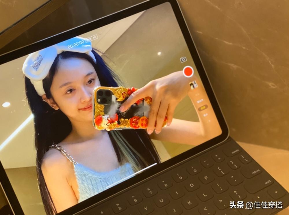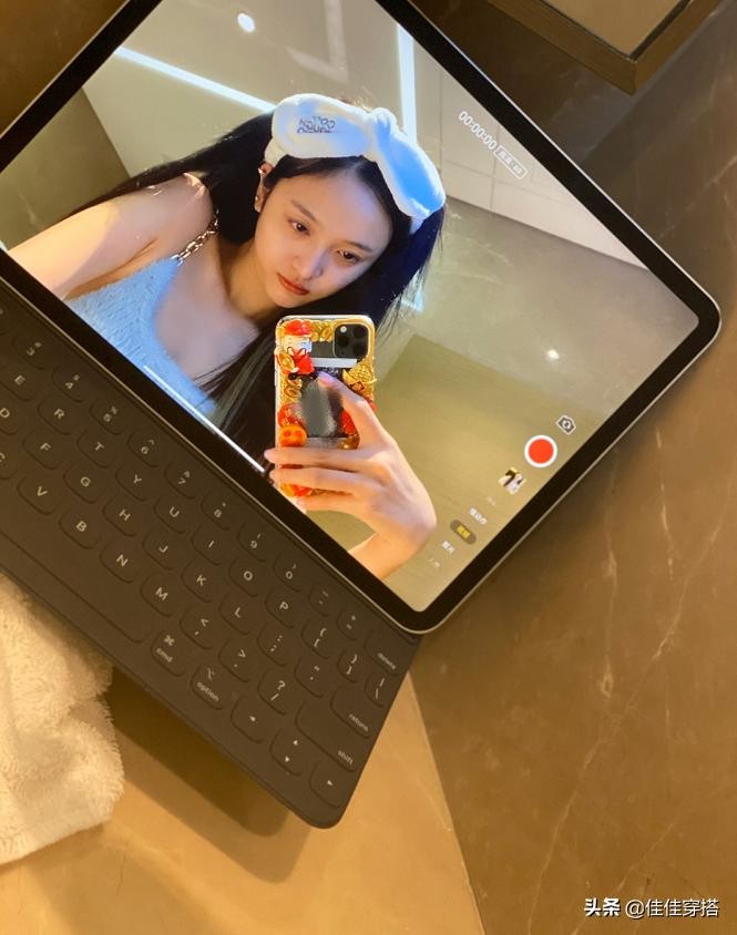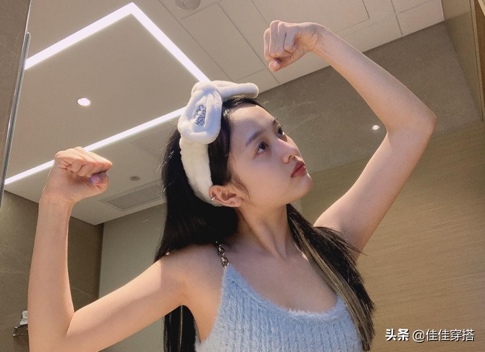 日前,吴宣仪在个人社交平台上晒自拍照。照片中,吴宣仪素颜出镜,头上绑着发带,穿着浅蓝色吊带上衣,对着镜头时而捧脸卖萌,时而举起手臂作大猩猩状,做鬼脸,毫无偶像包袱。