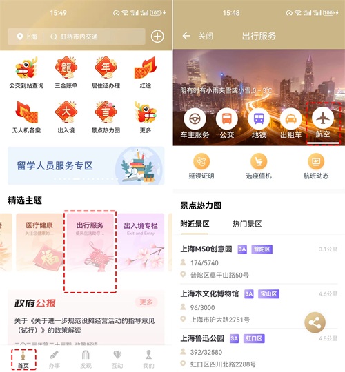 如今,航空旅行已成为我们日常生活中不可或缺的一部分。为了让您的飞行体验更加顺畅、舒适,“随申办市民云”APP-“航空”服务应运而生,为您带来一站式、全方位的航空服务体验,让您的飞行之旅更加便捷、高效。