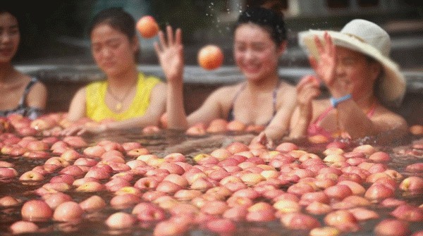 春节期间天沐温泉推出红椒池、苹果池,维景温泉推出橙子池和柚子池,寓意着新的一年红红火火、平平安安。