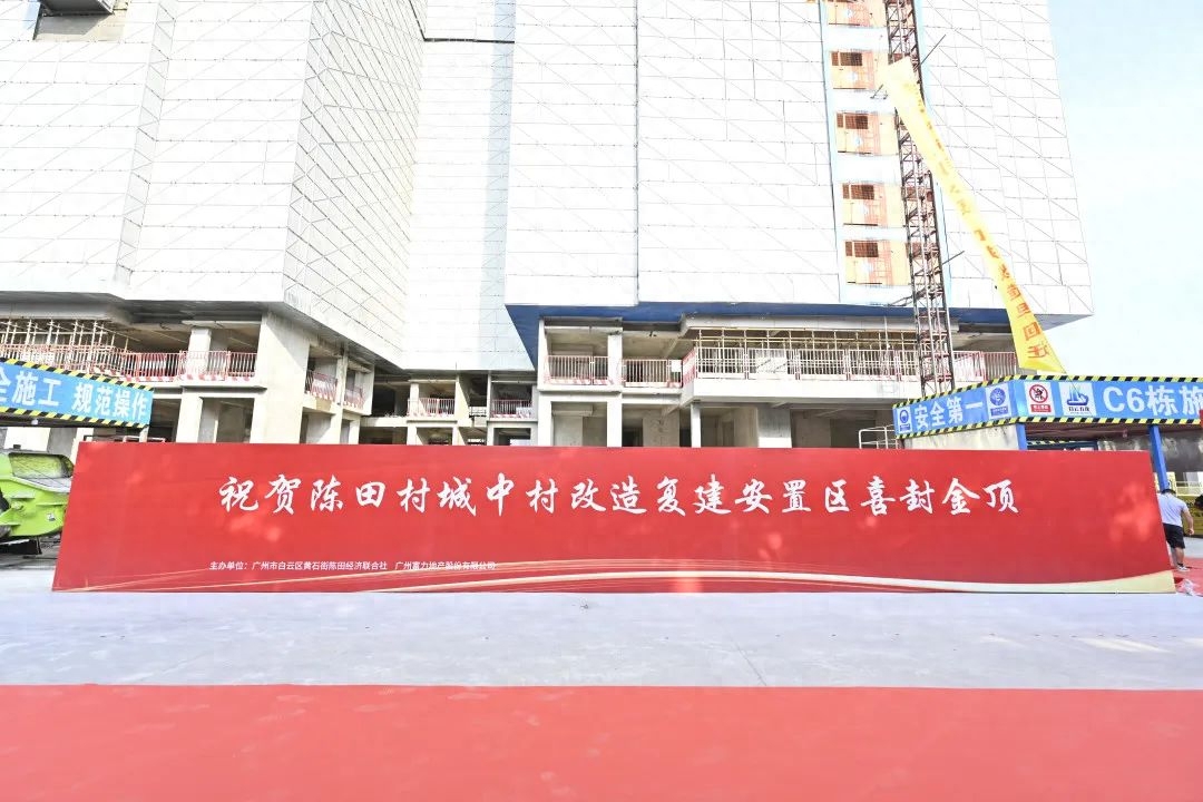 此次封顶的复建住宅为陈田村“城中村”改造项目的一期工程部分项目,位于白云大道北如家酒店旁的陈田牌坊右侧区域,共有10栋住宅,计划一期复建住宅今年底全面封顶。