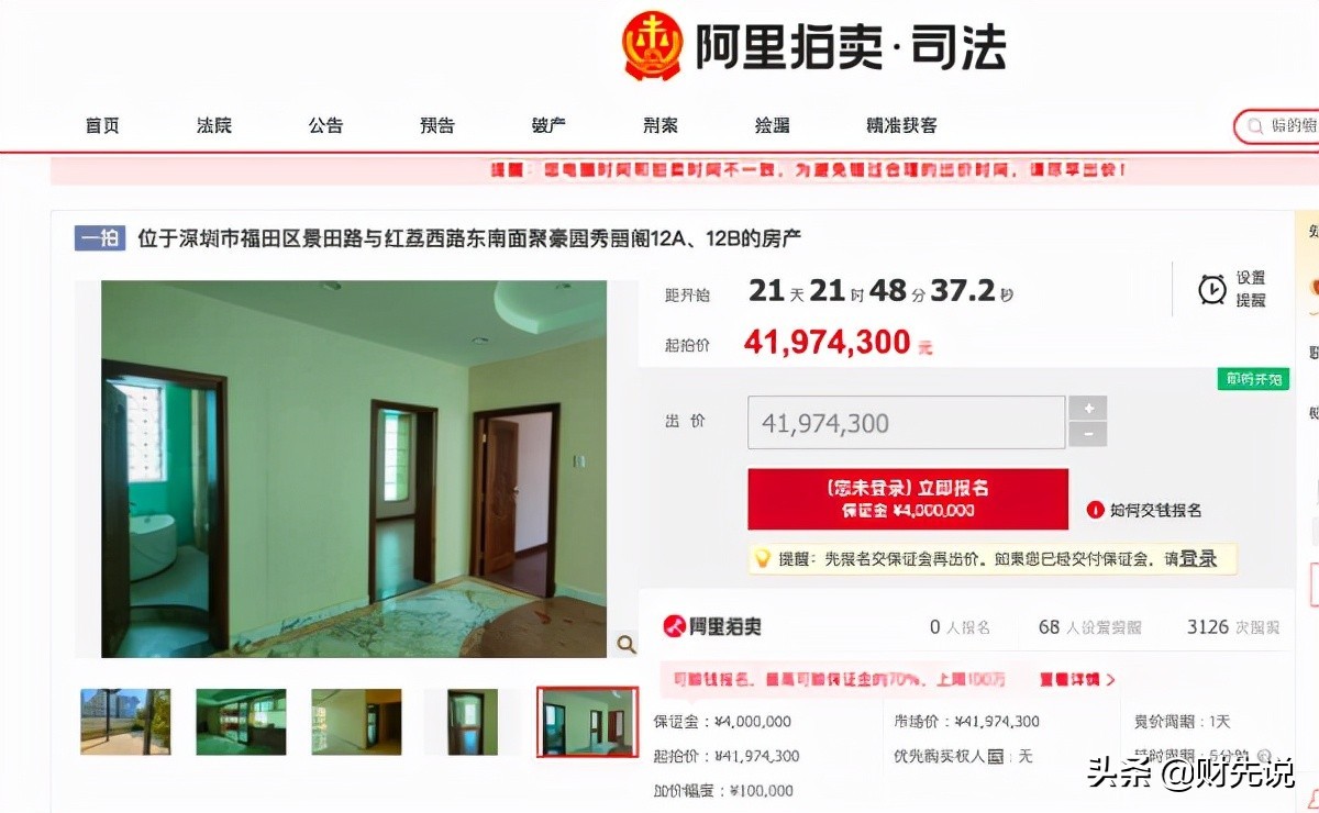不仅如此,据阿里拍卖平台12月14日显示,为了实行执行裁定,马兴位于深圳市福田区的两处房产遭拍卖,拍卖时间为2022年1月5日,起拍价为4197万元。