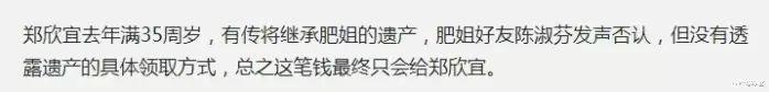 去年,郑欣宜年满35岁,人也成熟了,终于可以继承那笔财产了。