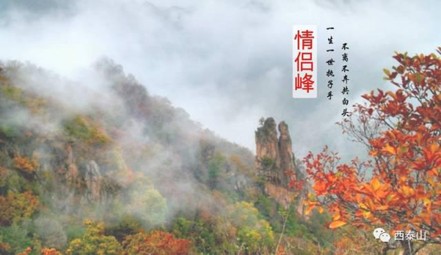 西泰山是文化之山,文明之山,是华夏文化的摇篮。这里是炎黄会盟地,海拔1488米的山体上,炎黄峰神态酷似炎黄二帝并肩而坐,与西泰山地区自古以来有关炎黄二帝传说巧相呼应,独特的自然景观与丰厚的人文资源相得益彰、完美统一。情侣峰是一处举世罕见的动态自然景观,高达108米、酷似一对恋人相拥相偎的情侣峰亦静亦动,人动景变,景随步移,演绎出一段海誓山盟、一吻万年的爱情故事。