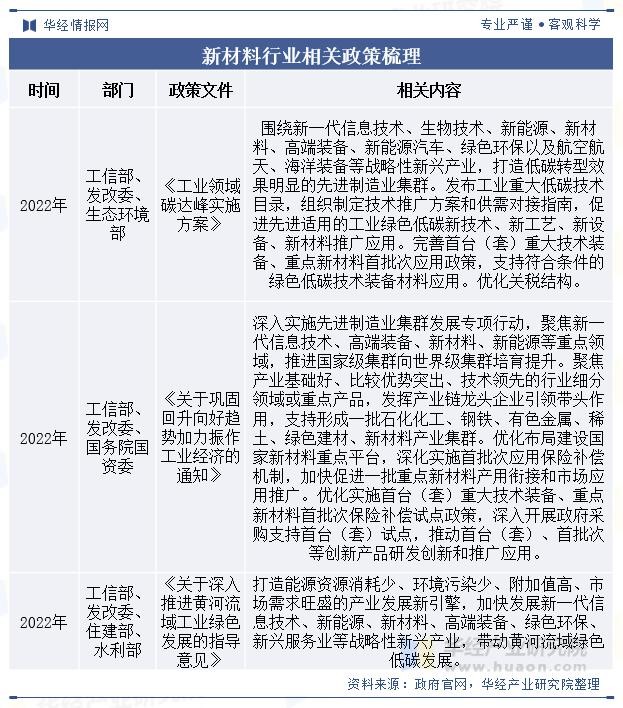 近年来,国务院、工信部等国家部委就陆续推出了一系列政策文件来推广新材料应用,加快促进一批重点新材料产用衔接和市场应用推广,围绕新能源、新材料等战略性新兴产业,打造低碳转型效果明显的先进制造业集群,推动新材料与电力装备的融合创新,推进产业链上下游协同创新和科技成果转化应用。