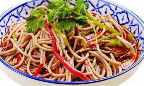 荞面饸饹:北方面食三绝之一,用荞麦面制作面条爽滑筋道,有嚼劲,配上喜欢的调料味道非常鲜美。荞面是承德地区特别是坝上的传统作物,用它做成的面食有特殊风味。荞面以淡碱水和好揉匀,通过河漏床子把面压成长条投入滚水中,入水即热。挑出后配上卤,加上蒜末、香油、醋,味道好极了。荞面饸饹是承德特色美食之一,与北京抻面、山西刀削面齐名。