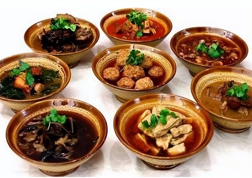 满族八大碗:满族人家最平常的菜肴,早先只在满族人家食用。清朝乾隆期间,正值鼎盛时期,满汉全席分为“上八珍”、“中八珍”、“下八珍”,满族八大碗被纳为满汉全席之一下八珍。
