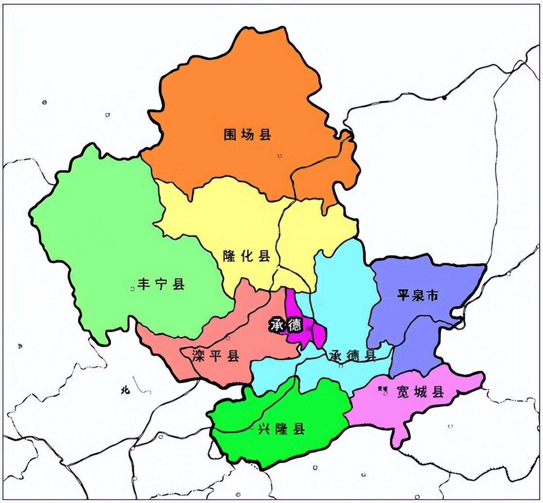 地理位置:承德位于东经115°54′-119°15′,北纬40°11′-42°40′,处于华北和东北两个地区的连接过渡地带,南邻京津,北接赤峰市和锡林郭勒盟,东西与朝阳市、秦皇岛、唐山、张家口市相邻,是连接京津冀辽蒙的重要节点。