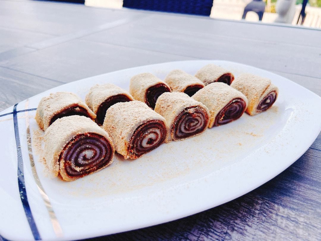 驴打滚:河北承德的特色小吃,以黄米为主要原料制作而成。它由黄米夹馅儿卷成长卷,外层粘满豆面,呈金黄色,豆香馅儿甜,入口绵软,别具风味。