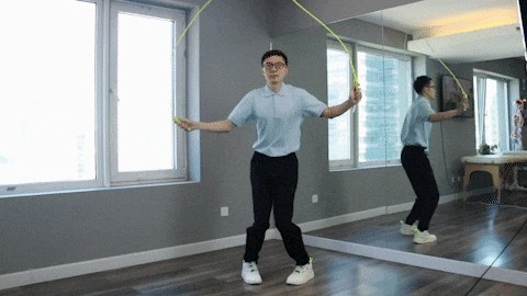 建议没有运动基础的人,持续跳绳1~2分钟,休息1~2分钟,间隔完成20~30分钟即可;体能好的人可以挑战“间歇式跳绳”,即每分钟跳150次,每跳2分钟休息30~60秒。