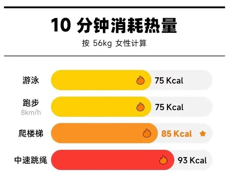 跳绳是高效的有氧燃脂运动。从能量消耗看,以每分钟跳70~80次的速度跳绳10分钟,消耗的能量约等于慢跑15~20分钟。