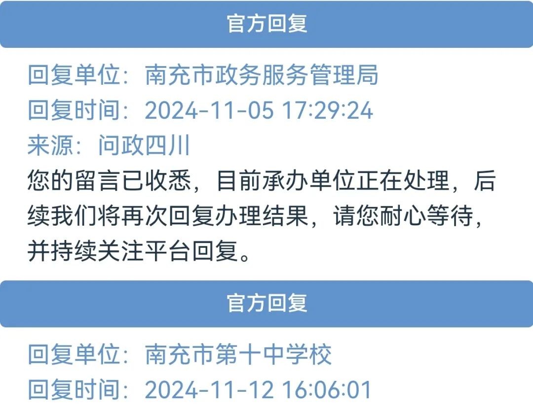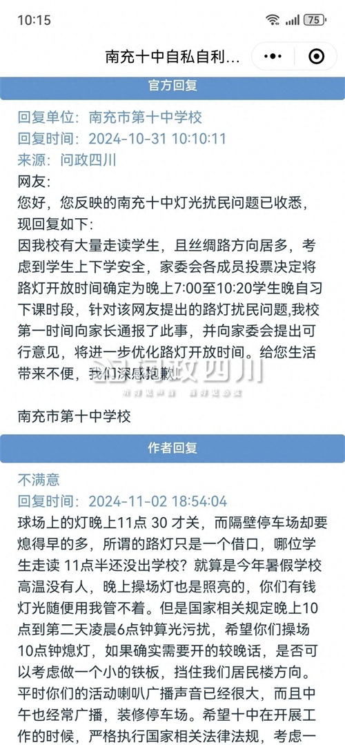 11月12日,南充市第十中学校针对网友反映的南充十中灯光扰民问题已收悉,现回复如下: