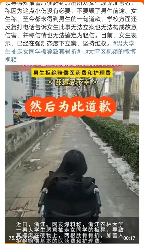 "浙江农林大学女生骨折事件:呼吁正义与维权!"
