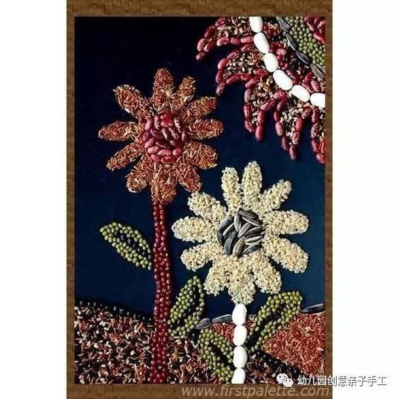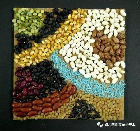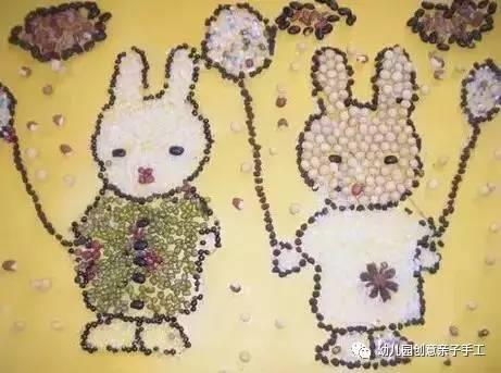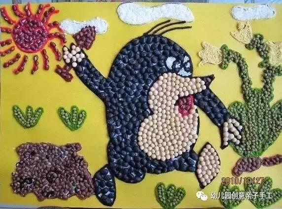 幼儿园亲子手工之豆子粘贴画,新年必备手工,几十款图案快收藏!