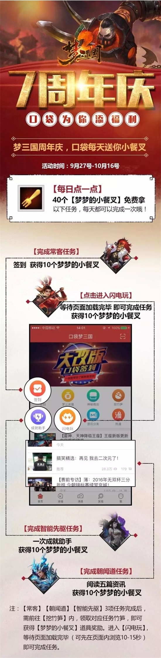 2.口袋周年活动:每日完成活动可获取40个梦梦的小餐叉