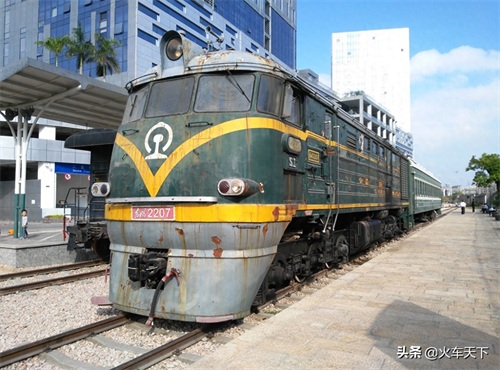 东风型的内燃机车原型是1958年试制出来的巨龙型内燃机车,1964年开始批量生产,取名东风型,最初两百多台的脸型并不好看,之后生产的才是这种圆猫脸,既能用于客运又能用于货运,构造时速100公里,1974年停产时东风型一共生产了七百多台,生产厂家有大连机车厂、戚墅堰机车厂等单位,1972年到1974年,大连机车厂又生产了东风3型内燃机车,外型和东风型一样的,只是构造时速提高到120公里,主要是用于客运,80年代东风3型机车大修后构造时速普遍变成100公里,与东风型一样,等于是变成了东风型。因为东风型、东风3型内燃机车以及东风2型的内燃调机算比较老的内燃机车,所以习惯称它们老东风。