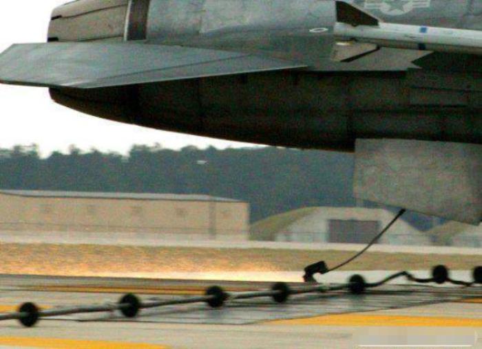 怎么能让飞机在200米内停稳?这就需要额外增加阻力,就是航母阻拦索,这几道钢索,也被称为舰载机的生命线。