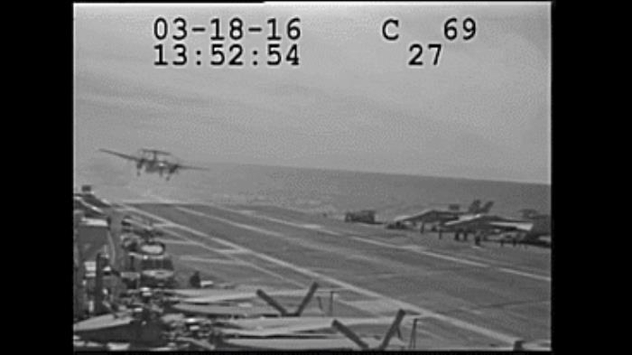 2003年9月11日,“华盛顿”号航母上的一架FA-18大黄蜂战斗机降落时,原本成功地钩住了阻拦索,谁知因为阻拦索维护不当,竟然断裂。导致了已经减速的飞机一头扎进了海里,飞行员在坠海前弹射逃生。
